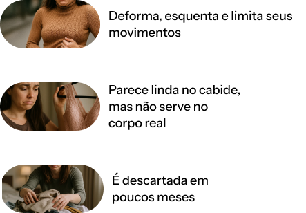 Criamos apenas 3 peças essenciais, pensadas para durar, acompanhar seus ritmos e valorizar cada detalhe do seu corpo.